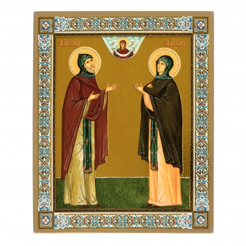 Икона настольная 11х13 на подставке, объемная печать Петр и Феврония