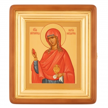Икона живописная на доске в киоте 18х24 темпера, золоченый нимб, ковчег, киот №1 Мария Магдалина, 00729