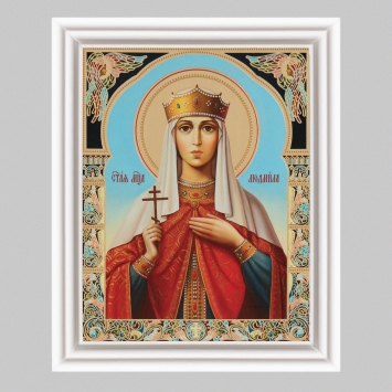 Икона в деревянной рамке №3 11х13 (белая) двойное тиснение Людмила Чешская, княгиня, мц. (4)