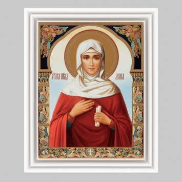 Икона в деревянной рамке №3 11х13 (белая) двойное тиснение Анна Пророчица 3