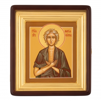Икона живописная на доске в киоте 18х24 темпера, золоченый нимб, ковчег, киот №1 Мария Египетская, 02611