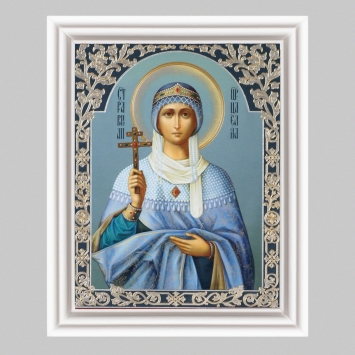 Икона в деревянной рамке №3 11х13 (белая) двойное тиснение Ольга, св. равноап. вел. княгиня (9)