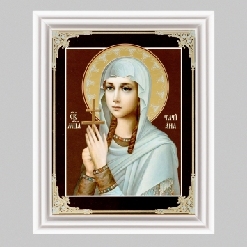 Икона в деревянной рамке №3 11х13 (белая) двойное тиснение Татиана св. Римская, дева, мц. (5)