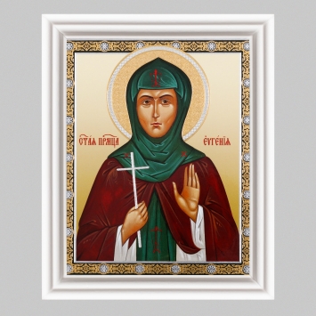 Икона в деревянной рамке №3 11х13 (белая) двойное тиснение Евгения Римская, прмц. 3