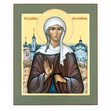 Икона живописная на доске 24х30 темпера, золоченый нимб, ковчег Ксения Петербургская, 00105