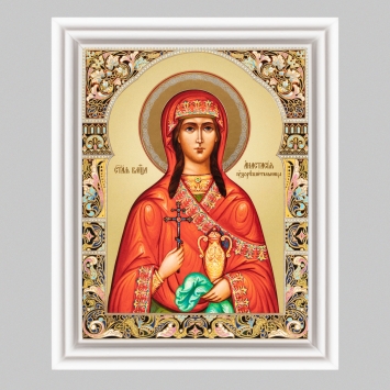 Икона в деревянной рамке №3 11х13 (белая) двойное тиснение Анастасия Узорешительница (поясная) №4
