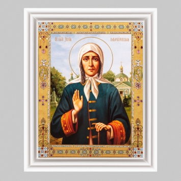 Икона в деревянной рамке №3 11х13 (белая) двойное тиснение Ксения Петербургская, блж. (7)