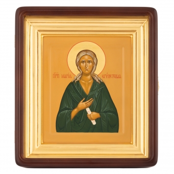 Икона живописная на доске в киоте 18х24 темпера, золоченый нимб, ковчег, киот №1 Мария Египетская, 02707