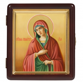 Икона живописная на доске в киоте 13х15 масло, золоченый нимб, киот №1 Ева, 05573
