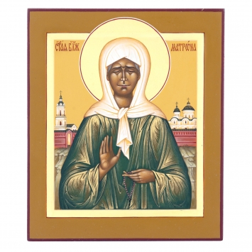 Икона живописная на доске в киоте 24х30 темпера, золоченый нимб, ковчег, киот №1 Матрона, 05632