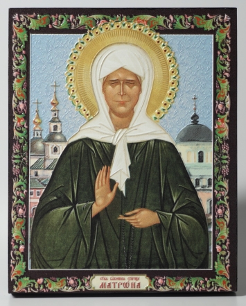 Икона в деревянной рамке №1 11х13 двойное тиснение Матрона Московская (2)