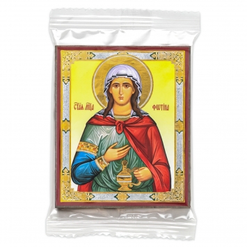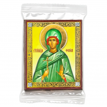 Икона на деревянном планшете 6х9 двойное тиснение, аннотация, упаковка Фаина