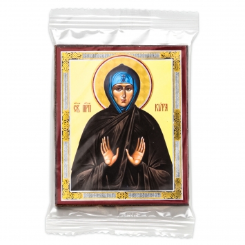 Икона на деревянном планшете 6х9 двойное тиснение, аннотация, упаковка Кира Берийская, прп.