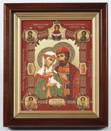 Икона в киоте 18х24 фигурный, темпера, рамка золочёная Петр и Феврония 1