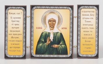 Складни деревянные 7х12 трехстворчатые, двойное тиснение Матрона Московская (с венчиком)