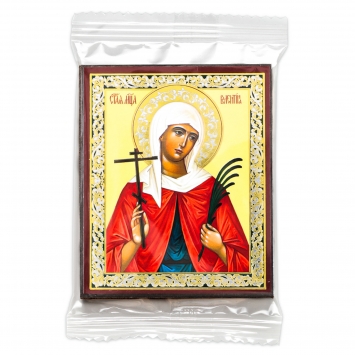 Икона на деревянном планшете 6х9 двойное тиснение, аннотация, упаковка Валентина Кесарийская, дева, мц. (3)