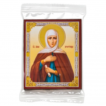 Икона на деревянном планшете 6х9 двойное тиснение, аннотация, упаковка Анна Пророчица, дочь Фануилова 2