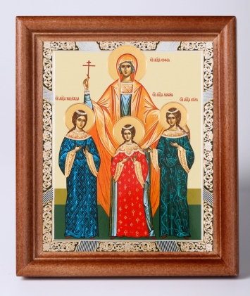 Икона в деревянной рамке 11х13 Набор с Днем Ангела, двойное тиснение Вера Надежда Любовь 5