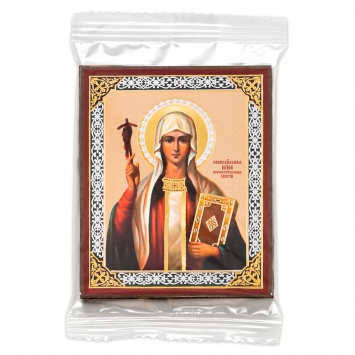 Икона на деревянном планшете 6х9 двойное тиснение, аннотация, упаковка Евдокия прп. (Евфросиния Московская) (2)
