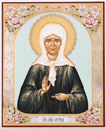 Икона на оргалите №1 11х13 двойное тиснение Матрона Московская (рамка с цветами) 2