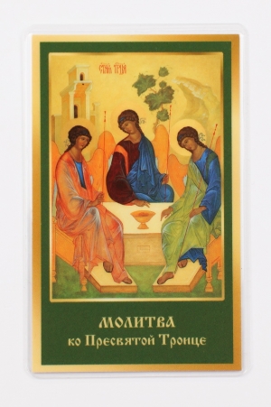 Икона в жесткой ламинации 5х8 с оборотом Троица (Рублевская)