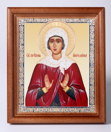 Икона в деревянной рамке 11х13 Набор с Днем Ангела, двойное тиснение Ангелина Сербская, прав. (2)