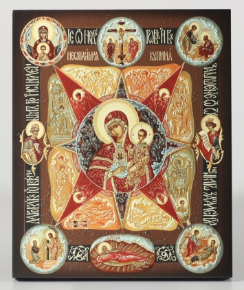 Икона на доске 13х15 объёмная печать, лак Неопалимая Купина