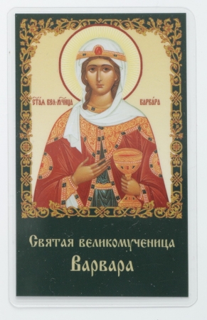 Икона в жесткой ламинации 5х8 с оборотом Варвара Илиопольская, вмц.