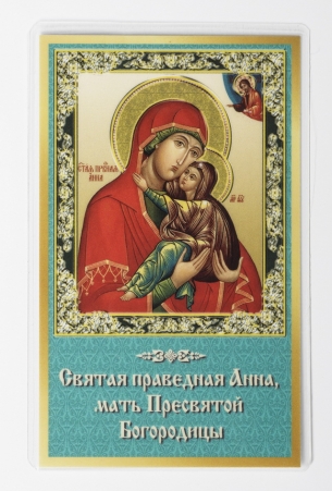 Икона в жесткой ламинации 5х8 с оборотом Анна Праведная