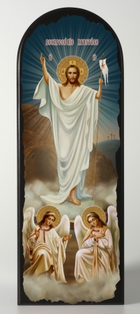 Икона на МДФ 18х50 арочная, объёмная печать, лак Воскресение Христово 3
