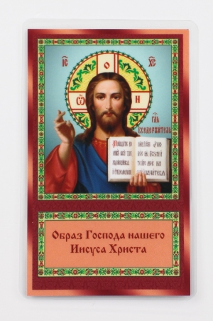 Икона в жесткой ламинации 5х8 с оборотом Спаситель (пояс.)