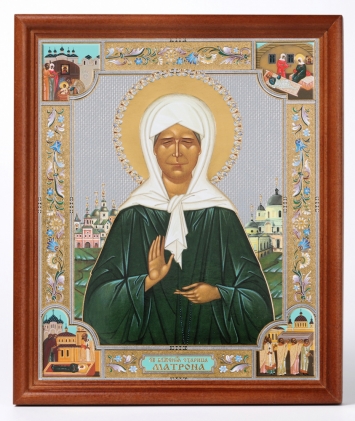 Икона в деревянной рамке №1 18х24 двойное тиснение Матрона Московская (с клеймами)