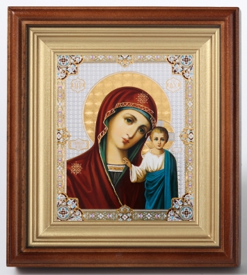 Икона в киоте 11х13 сложный, двойное тиснение Казанская БМ 14