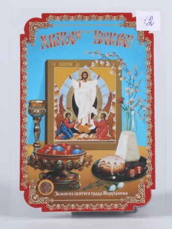 Икона в жесткой ламинации 8х11 с оборотом, тиснение, высечка, частица земли Воскресение Христово 12