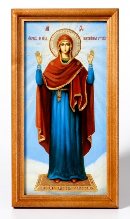 Икона на оргалите №1 11х13 двойное тиснение Покров (ростовой) 3