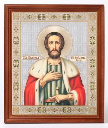Икона в жесткой ламинации 5х8 с оборотом Владимир, равн. князь Киевский