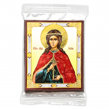 Икона на деревянном планшете 6х9 двойное тиснение, аннотация, упаковка Иулия Карфагенская, дева, мц. (3)