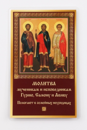Икона в жесткой ламинации 5х8 с оборотом Гурий, Самон, Авив