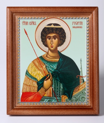 Икона в деревянной рамке 11х13 Набор с Днем Ангела, двойное тиснение Георгий Победоносец