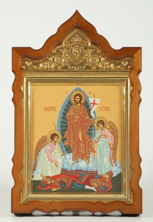 Икона живописная на доске в киоте 24х30 золоченый нимб, киот №6 Воскресение Христово