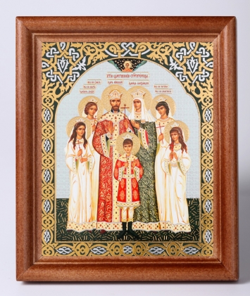 Икона в деревянной рамке №1 11х13 двойное тиснение Царская семья