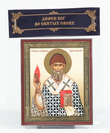 Икона на деревянном планшете 6х9 тиснение, аннотация, упаковка Спиридон Тримифунтский 4