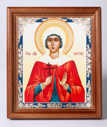 Икона в деревянной рамке 11х13 Набор с Днем Ангела, двойное тиснение Алевтина Кесарийская, мц. (3)