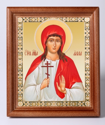 Икона в деревянной рамке 11х13 Набор с Днем Ангела, двойное тиснение Алла Готфская, мц. (3)
