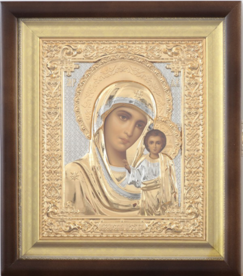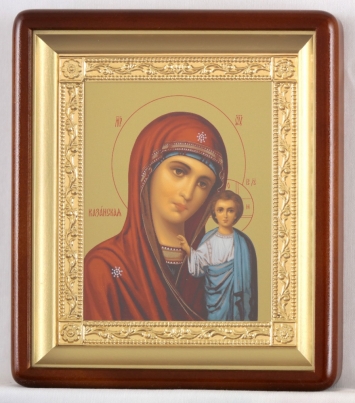 Икона в киоте 18х24 фигурный, темпера, рамка золочёная Казанская БМ 1