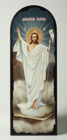 Икона на МДФ 18х50 арочная, объёмная печать, лак Воскресение Христово 1