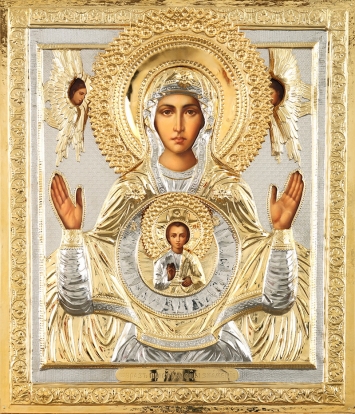 Икона в киоте 18х24 сложный, темпера, риза-рамка №1 Семистрельная БМ