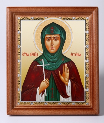 Икона в деревянной рамке 11х13 Набор с Днем Ангела, двойное тиснение Евгения Римская, прмц.