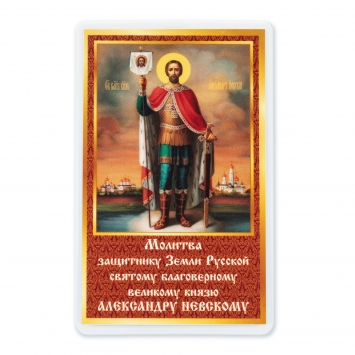 Икона в жесткой ламинации 5х8 с оборотом Александр Невский ростовой