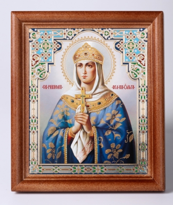 Икона в деревянной рамке 11х13 Набор с Днем Ангела, двойное тиснение Ольга, св. равноап. вел. княгиня (6)